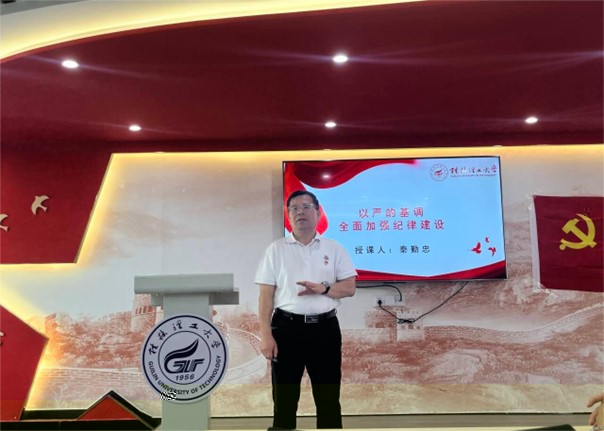 為了認真學習貫徹習近平總書記關于黨紀學習教育的重要講話和重要指示精神,按照《關于在全黨開展黨紀學習教育的通知》要求,9728太阳集团首页研究生黨支部和本科生第三黨支部于2024年5月23日下午15:00在雁山校區6A明園一站式學生社區開展黨課活動。黨課的主題為《以嚴的基調全面加強紀律建設》,學院黨委書記秦勤忠主講,學院專職組織員夏琳主持會議,在校的全體學生支部黨員參加。