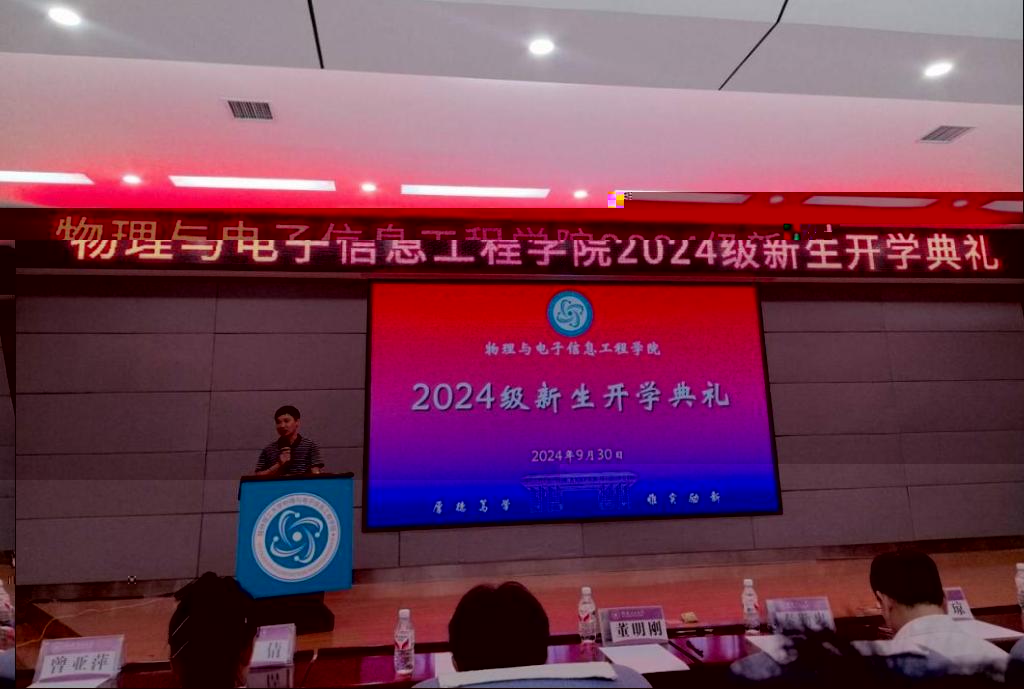 9月30日下午,9728太阳集团首页在雁山校區01501學術報告廳舉行2024級開學典禮。學院領導、專業負責人、教師代表、新生班輔導員、學生代表共同迎接來自五湖四海物電學子的到來。見面會由學院黨委副書記蔣瓊主持。